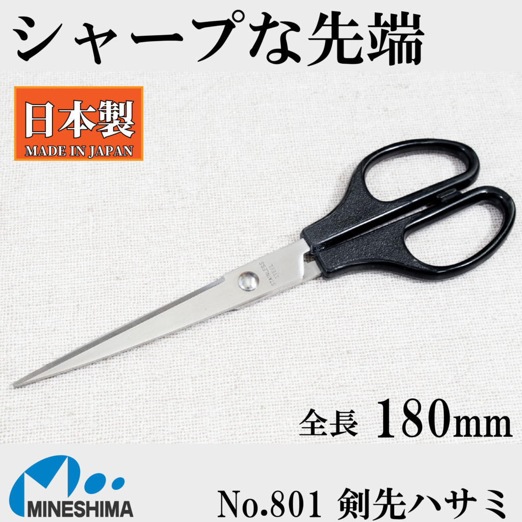 ✏日用品, 文房具【日本製】剣先ハサミ 180mm ハサミ はさみ 日本製 精密 シャープ ステンレス 事務用 子供 コンパクト 紙 事務 文具 オフィス 小学生 新生活 入学 文房具 鋏【MADE IN JAPAN】