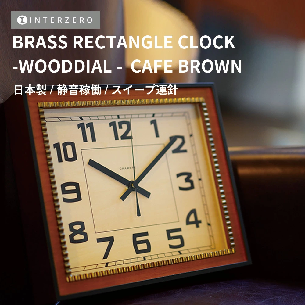 clock, 💺FurnitureMade in Japan [BRASS RECTANGLE CLOCK -WOODDIAL- (Brass Rectangle)] [Cafe Brown] Wall Clock with Quiet Operation and Continuous Sweep Second Hand. A great gift! [CHAMBRE CH-053CBW] [InterZero] [MADE IN JAPAN]