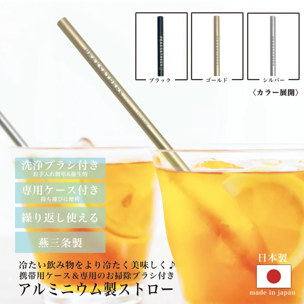 ✏Daily necessities, Daily necessitiesMade in Japan: Aluminum Straw Set with Carrying Case and Cleaning Brush, Available in 3 Colors, Tsubame-Sanjo, Made in Japan, My Straw, Reusable, Portable, Eco-Friendly, Outdoor, Cafe, Muddler, Easy to Clean, PEAKS&TREES [MADE IN JAPAN]