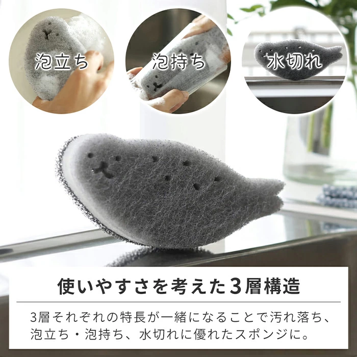 🥄Kitchen, spongeMade in Japan marna Seal Sponge K700, a kitchen sponge for dishes, washing dishes, and more. Slim, non-abrasive design for glasses, cups, and sinks. Cute and stylish, made in Japan. A great gift.